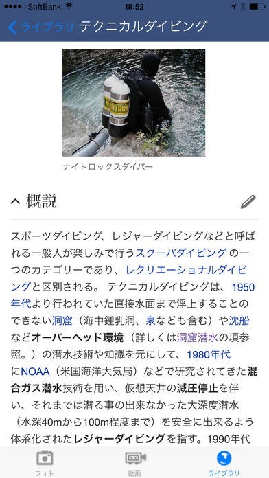 わからない用語やポイントがある時に簡単に調べられるのが「スキューバダイビングワールド」の利点です。ダイビングにも様々な種類がありますので、このアプリではその種類に応じた詳細なライブラリが提供されています。