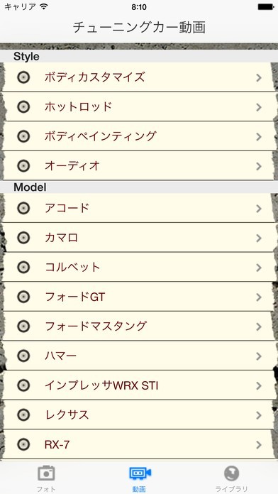 App Storeより引用1000を超える動画を収録!世界中のチューニングカーをiPhoneで!国内外のカスタム車を高画質の動画や写真で楽しむことができるアプリです。