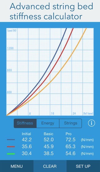 測定するにはガットの太さと材質、フェース面積を入力する必要がありますが、これらの情報は登録しておくことができるので、複数のラケットを持っていてもすばやく測定できます。