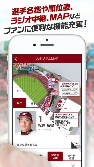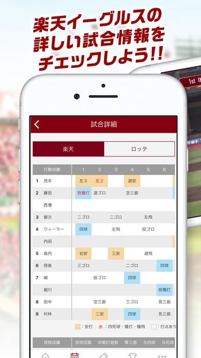 プロ野球チームの東北楽天ゴールデンイーグルスのファンの人なら必見のコンテンツが満載のアプリとなっていて、選手のプロフィールや試合の詳細情報が確認できるようになっています。