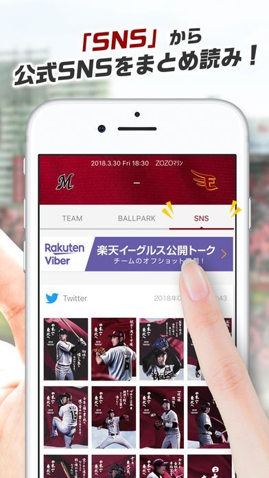 ゴールデンイーグルスの公式SNSの投稿をまとめて閲覧することが可能となっているので、最新の公式情報もスマートフォンからチェックすることができるようになっています。