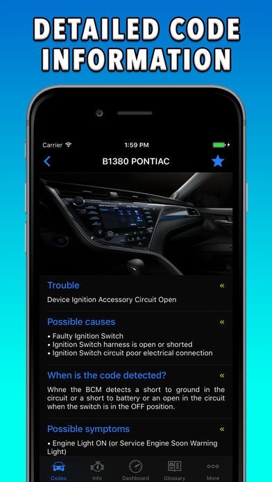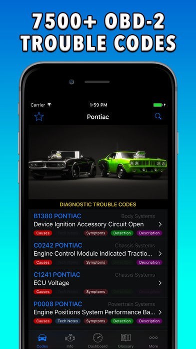 ポンティアック社の自動車の故障診断が行えるスマホアプリ