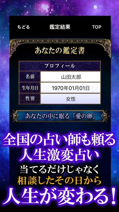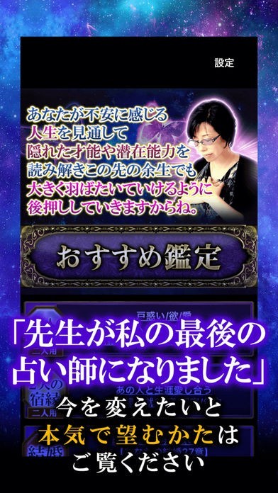 ※一度ご購入された占いも、「違った端末でアプリを再インストールした場合」や、「一度アプリをアンインストールしてから再度インストールし直した場合」には再購入が必要です。こちらご承知下さいませ。