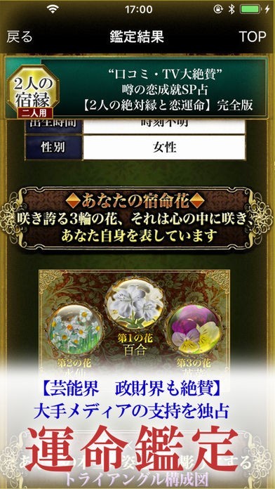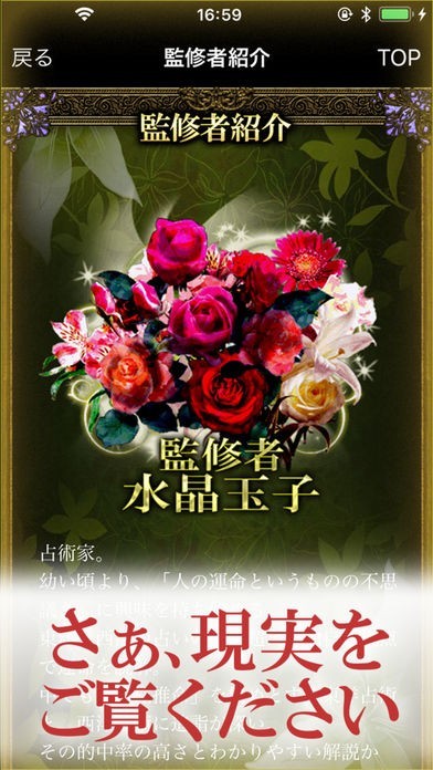 あのゲッターズ飯田も尊敬している”水晶玉子”の『陰陽艶花占』が自宅で簡単に占えます。占う人を3つの花にたとえ、自分自身について知り、人生を美しく花開かせるための占いです。
