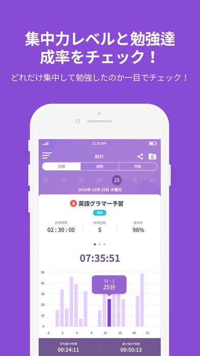 短時間の集中と休憩をくり返して取り組むことで、やるべき作業や学習への集中力を墜とさずに取り組めるという「ポモドーロテクニック」を実践できるように作られています。