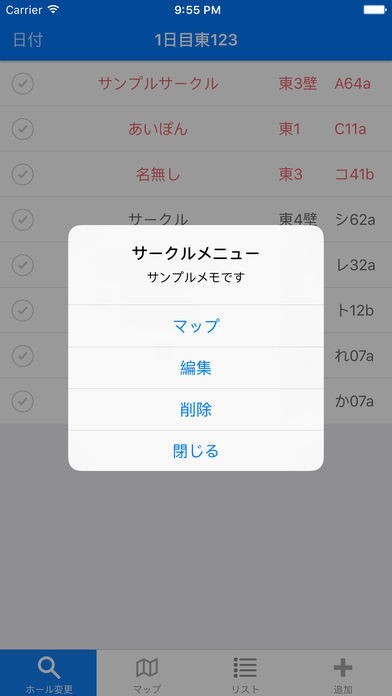 サークルごとのチェック機能を搭載しており、優先的に回りたいサークルを把握することができます。一言メモの記入も行えるため、同人誌の金額などをメモに残して当日に備えることができます。
