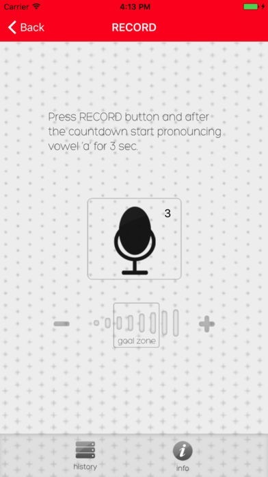 You should say long letter /a/ in natural way, best as a part of a word, like in five. Try to keep the power indicator within goal zone during three seconds for correct recording.