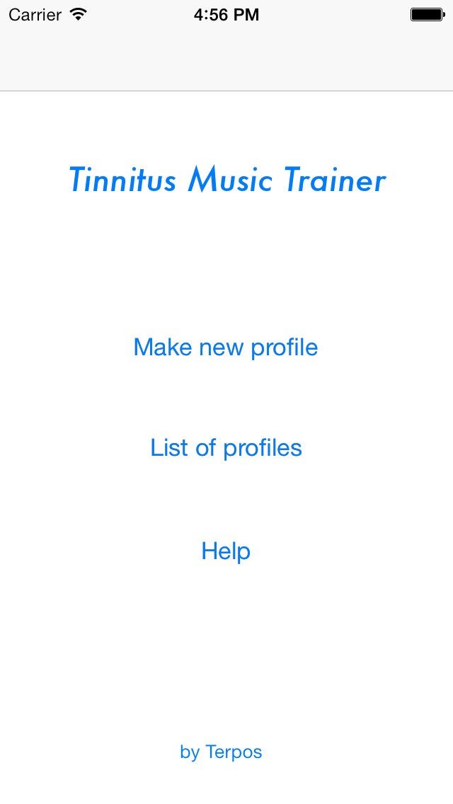 It consists of two parts. In first part of the app user should determine his tinnitus frequency by consecutive playing short sounds of different (adjustable) frequencies, until he finds the best match to his tinnitus frequency.
