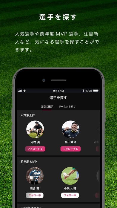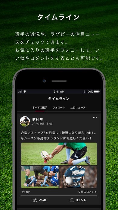 App Storeより引用RUGGERS はラグビー選手と交流ができる SNS です。