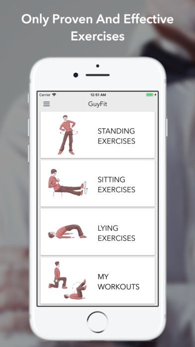 App Storeより引用Do you have a sedentary lifestyle? Over the course of time it can lead to the loss of virile strength. GuyFit is your personal trainer that offers the workouts consisting of the proven and effectiveness exercises to increase sexual vigor, perfectly suited both for the prevention and treatment of invirility.
