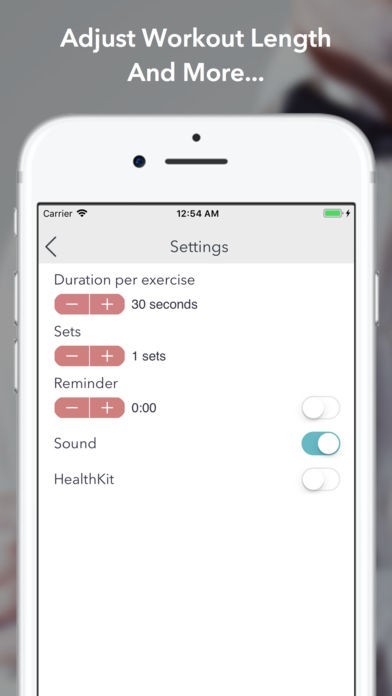 * Possibility to personally determine the suitable duration of each exercise and number of sets