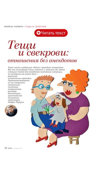 Журнал «ФОМА» – это уникальное православное издание, адресованное всем, кому небезразличны вера, многовековая культура и полная великих свершений история. На страницах журнала «ФОМА» лучшие православные авторы искренне и открыто говорят о вере и любви, радости, преодолении жизненных трудностей. Здесь есть истории сомнений и откровений, дружбы и милосердия, жертвенности и счастья.