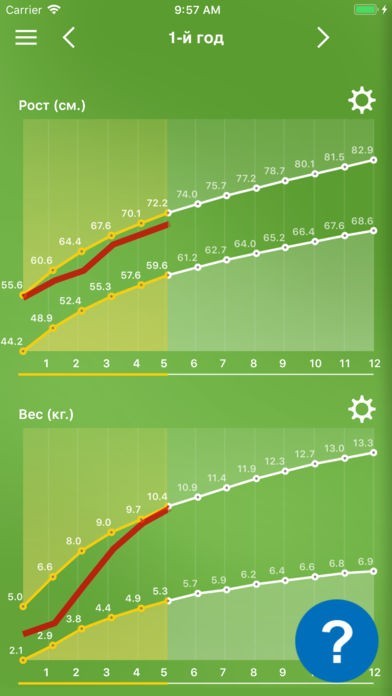 - Графики диапазонов изменения роста и веса малыша помогут проследить за правильным набором веса и роста. Внеся в программу информацию по измерениям веса и роста Вашего малыша Вы увидите достаточен ли его вес (рост) на данный момент.