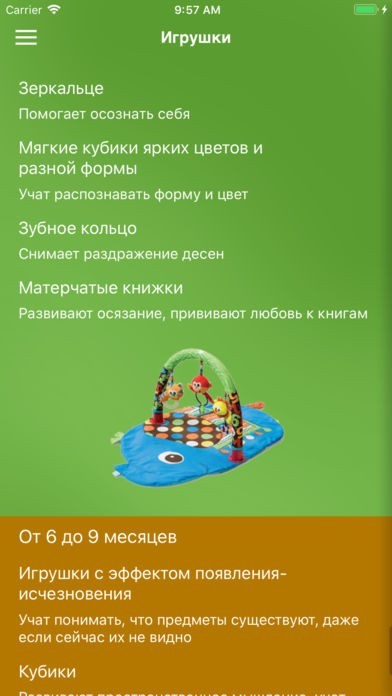 - Раздел Игрушки поможет подобрать ребенку развивающую игрушку в тот или иной период его жизни.