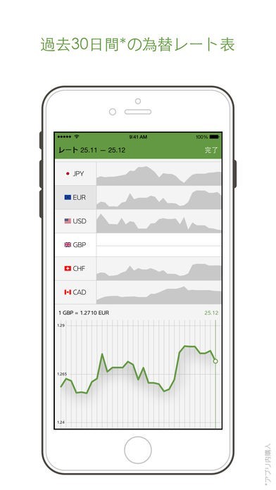オフラインでも通貨の計算がすばやくできるので、地下鉄の移動中や電波の届かない旅行先でもデータ容量を気にせず、アプリを使用できます。また、過去30日間の為替ルートも見ることができます。