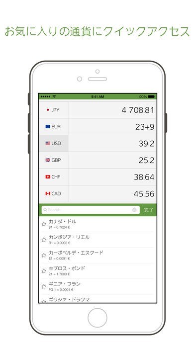 各国の為替レートやチャートが見れたり色々な通貨の変換に対応していて便利でした。