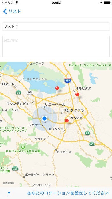 買い物リストとそのリストを購入したいお店とをロケーション設定から連携させることができます。アプリを起動されるとリストとロケーション設定した場所が表示されるので、どこで買い物をするかが一目で分かります。
