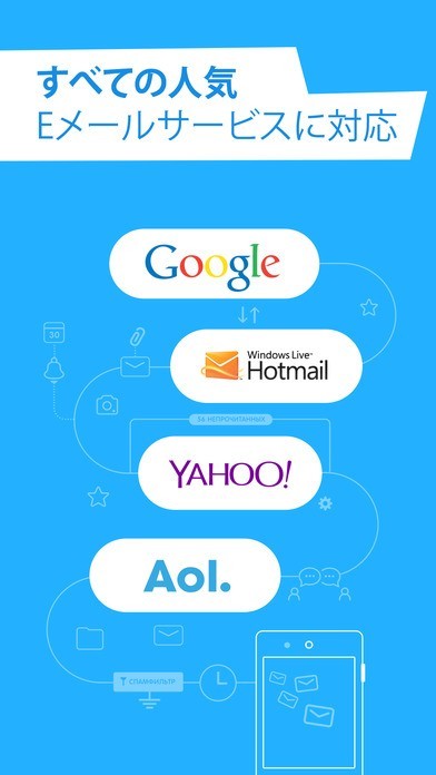 Yahoo!やGoogleなどのEメールアカウントを1つにまとめるアプリです。スパムフィルターで迷惑メールも完全ブロックしてくれます。なのに完全無料のアプリケーションです。