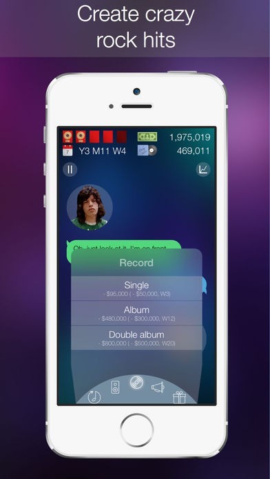 あなた独自のロックスターメンバーでレコーディングしたシングルやアルバム、ダブルアルバムをリリースして、音楽チャートランキング1位をめざして争うゲームとなっています。バーチャルショーを開催したりしてファンを増やし人気度を上げるなど、費用対効果を考えながらその都度、最適な経営戦略を取ることが求められる戦略性の高いマネジメントゲームです。