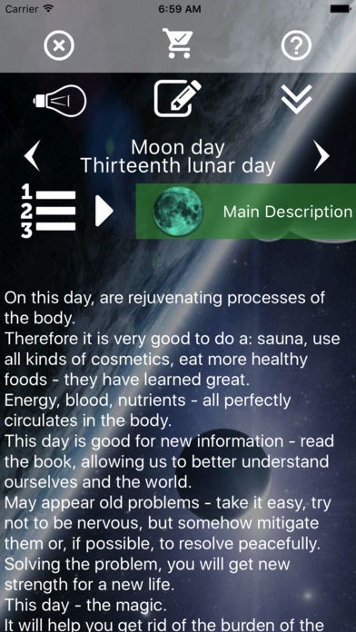 本アプリでは地球と月の位置関係を元に占星術などで様々な情報を得ることができます。恋愛や健康運、金運やアドバイスなど多岐にわたる情報を手軽に入手することが可能です。