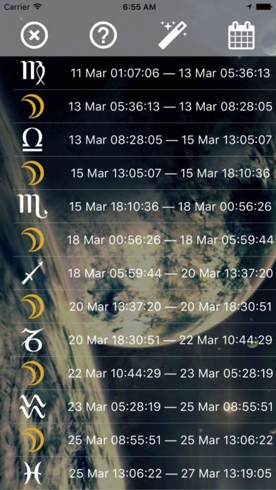 本アプリは占星術だけでなく月食や月相、日食といった月の情報を手に入れることができます。カレンダー形式で見ることができるためわかりやすく必要な情報を手に入れることができます。