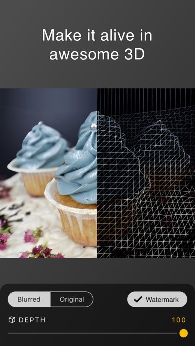App Storeより引用DPTH adds adjustable Depth Of Field and 3D photo effects to any image!