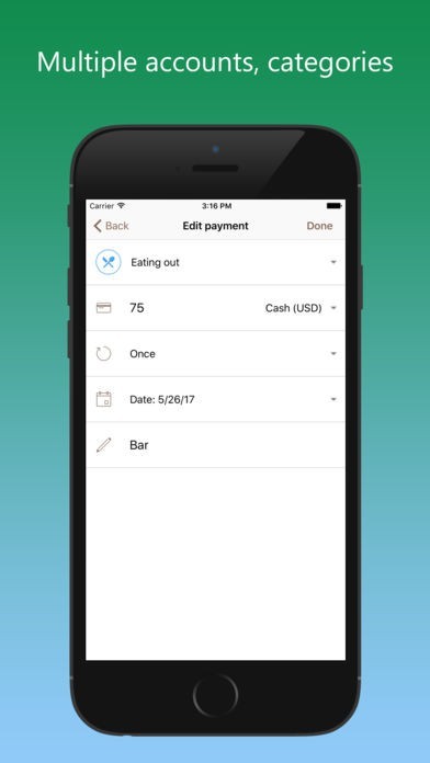 *In-app purchase required to unlock. Free app is restricted to 2 accounts and 2 months of budget forecast. Free version has no ads.