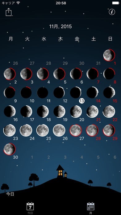 カレンダー月の段階で、夜空に映像のスクリーンショット