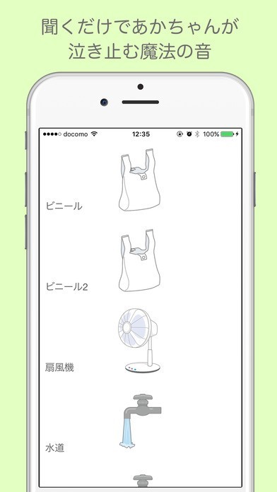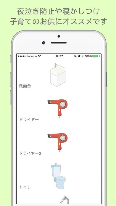 App Storeより引用あかちゃんがなきやむ魔法の音で夜泣き防止!