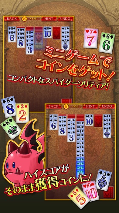 通常のスパイダーソリティアよりカードの枚数が少ない、コンパクトなスパイダーソリティアです。