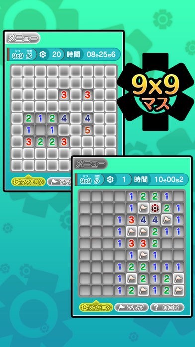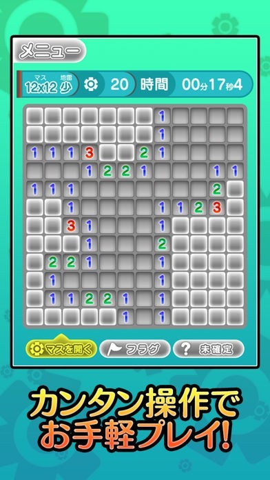 ●マインの無いマスをタッチすると、隣接する8マスに埋まっているマインの数が分かります。