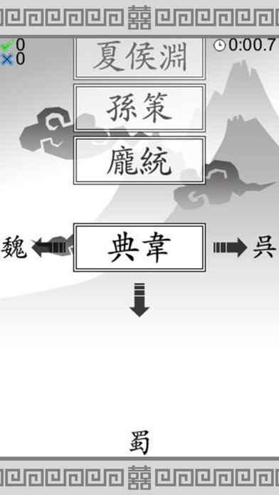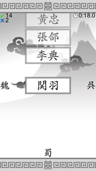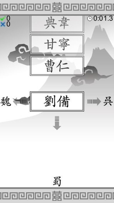 細かいことは気にせず三國志三分で出題され武将がどこの国に所属しているかを当てるというゲームなのでそこまで細かい知識がなくても遊べるのが良いです。気軽に三国志の知識量の確認ができて良いです。