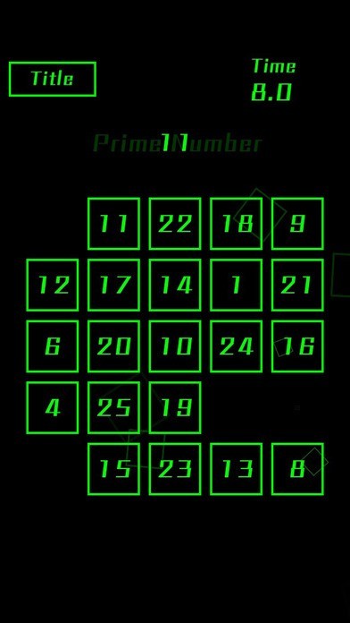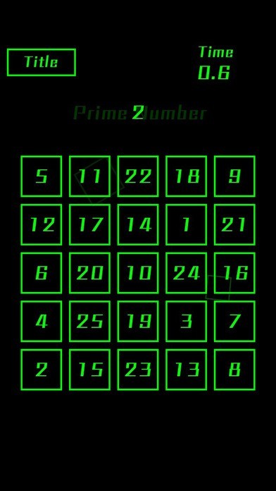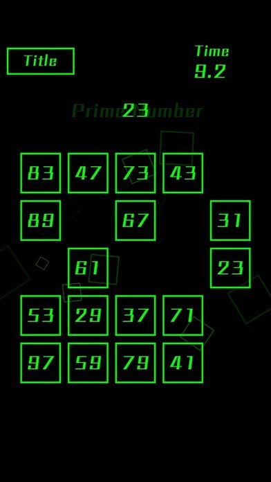 素数を見つけてタップしていくゲームです。 ゲームは二種類あり、ランダムに配置された1~25の数字の中から素数だけを見つけてタップしていくタイプと、同じくランダム配置された2~97の素数を、順に見つけてタップしていくタイプがあります。 タップするとすぐに次の素数が指示されるため、サクサクと進められます。 タイムを縮めることが大きな目的のひとつですが、素数を覚えるのにも適していると言えるでしょう。 ルールもシンプルなので、数を知っていれば子供でも楽しめます。 ベストスコアは保存され、全プレーヤーの中での順位も閲覧可能です。
