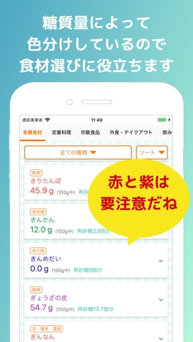糖質量の多さで食品を色分けしているからすぐにわかる