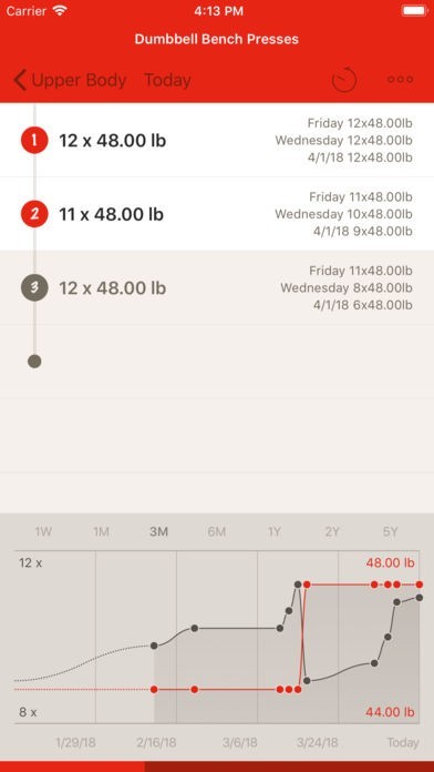 • Immediately see your exercise statistics in a configurable, interactive line graph