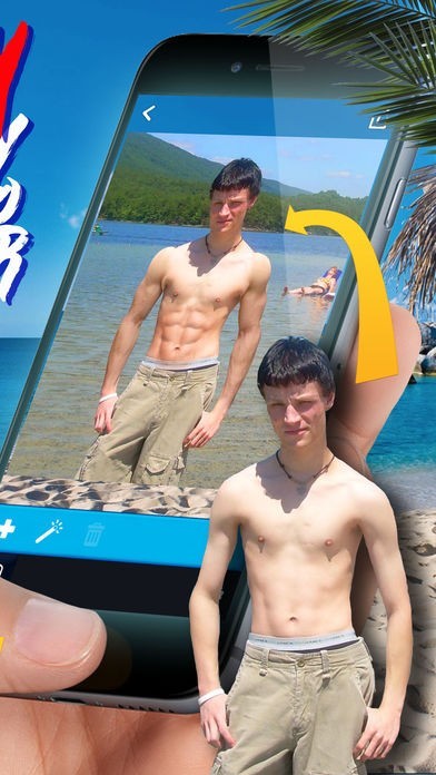 静止画上に追加してボディービルダー系の体つきに加工できる