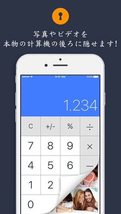 App Storeより引用完全機能のiPhone計算機の表面下に隠れた個人用ストレージのアプリ!秘密の写真と動画を保護されたストレージに隠して個人データを安全に保管。
