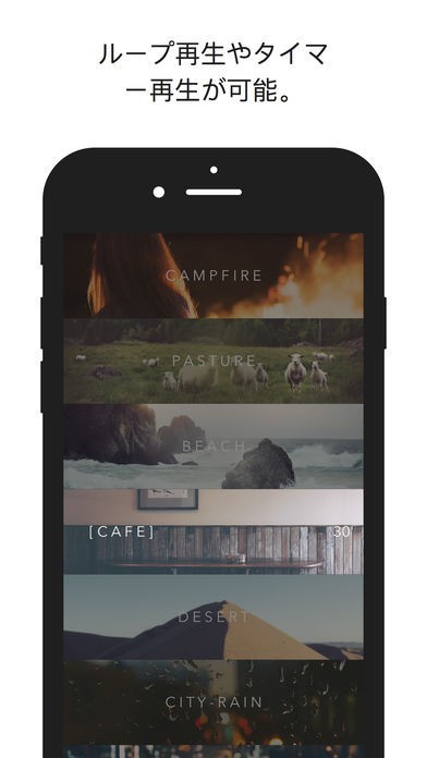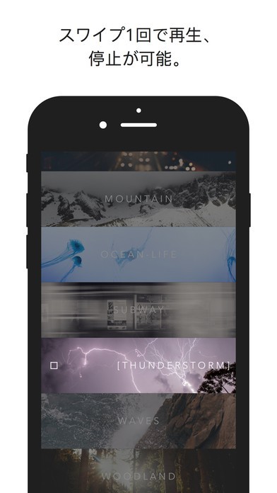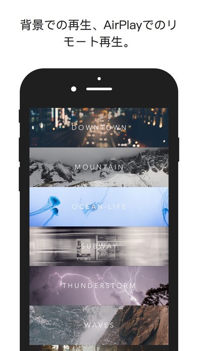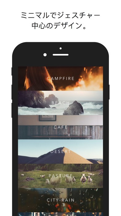 目を見張る、絶妙でアンビエントな音風景のコレクションのアプリ、Scapeで、これらのあなたの好きな風景の音をいつでも好きな時に楽しむことができます。