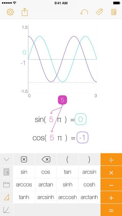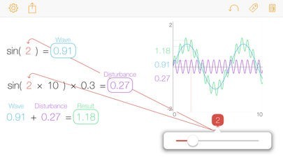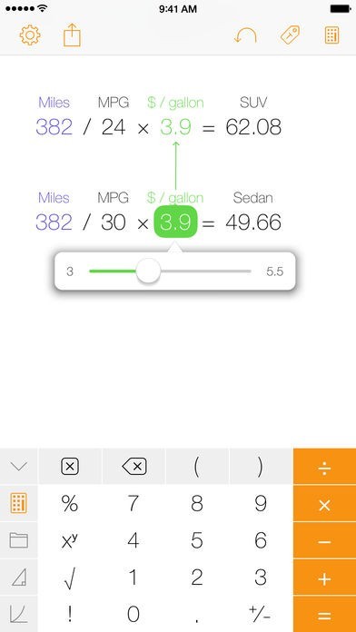 キャンバスの上で操作するだけで、自動ですべての計算結果を算出することができます。しかも数字はすべてキャンバス上に保存しておけるので、あとからどんな計算をしたのかも確認できます。