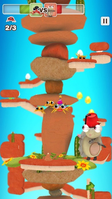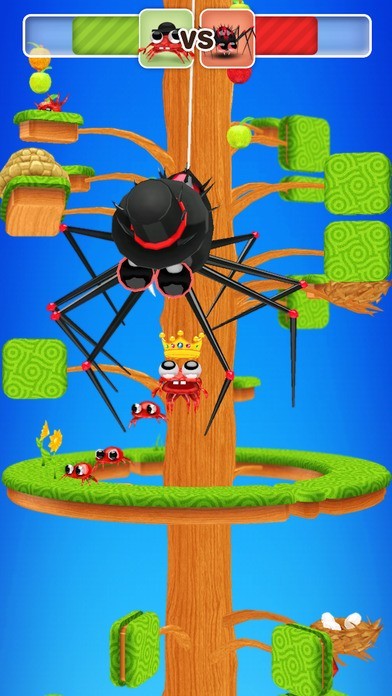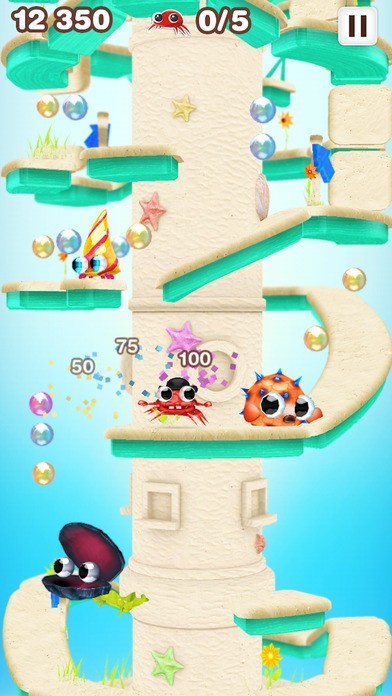 蟹のキャラクター「Mr.クラブ」を操って、回転しているタワーの頂上を目指すゲームです。Mr.クラブは横歩きで移動して行き、壁に当たると方向転換します。道の切れ目に来たらタイミングよくタップして、ジャンプで上の道に飛び乗ります。途中にいる赤ちゃんガニを助けたり、アイテムを獲得するとスコアアップします。 敵にぶつかっても下の道に落とされるだけで、ゲームオーバーになることはないのでそのまま続行できます。全部で27レベル用意されているのでやりごたえがあります。