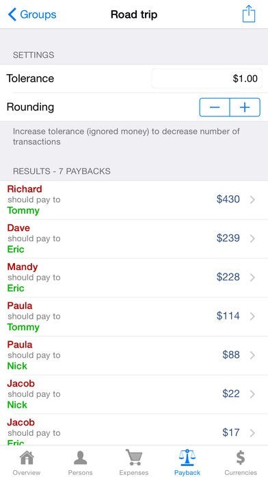 - Payback calculations (who should pay what to whom?)