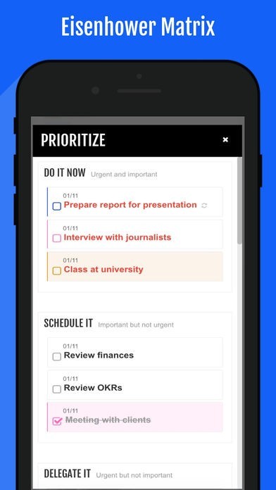 Prioritize using Quadrant: Week Plan has the built-in Eisenhower Quadrant that lets you structure your goals and tasks based on priority.