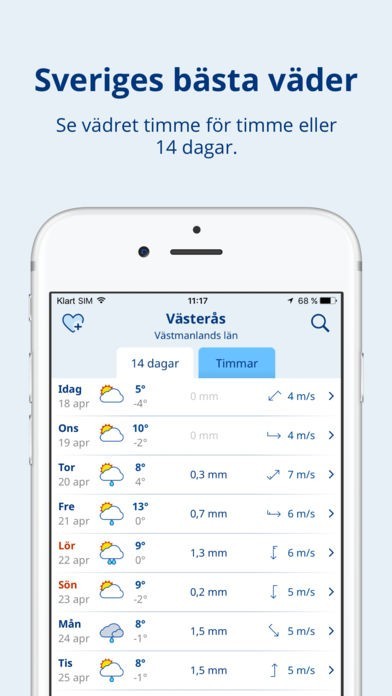 - Vädret i diagram (vänd på telefonen till liggande läge)
