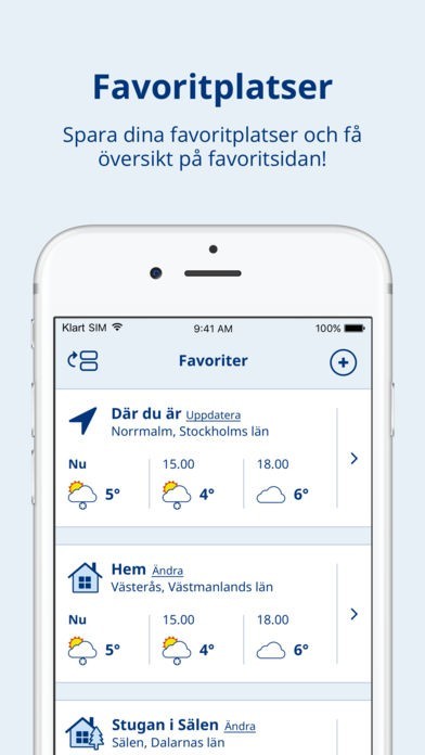 - Snabb och tydlig överblick av vädret