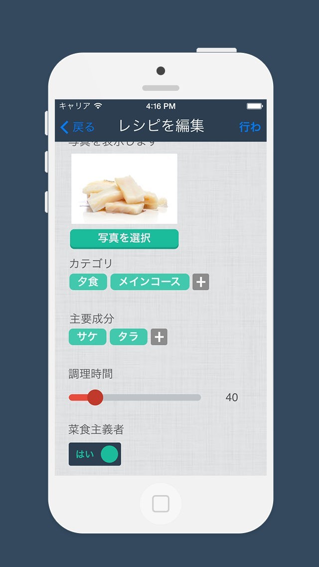 自分で作った料理のレシピを保存することが可能