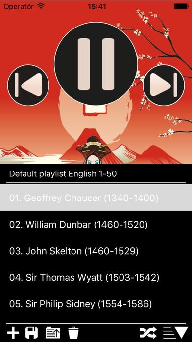 App Storeより引用A must have! This app is ideal to use as a reader for the game, OGOOLA KARUTA English 100. An English version of the exciting 400 year old Japanese poetry game. OGOOLA KARUTA English 100 uses 100 famous quotes from 100 poems by 100 poets. Read by actress and singer Myrra Malmberg. Have fun playing OGOOLA KARUTA with this app or just enjoy listening! Stand out by knowing poetry! 14.2MB