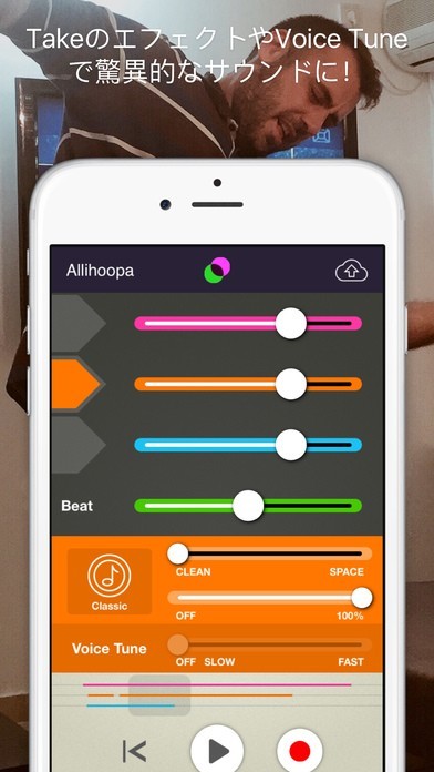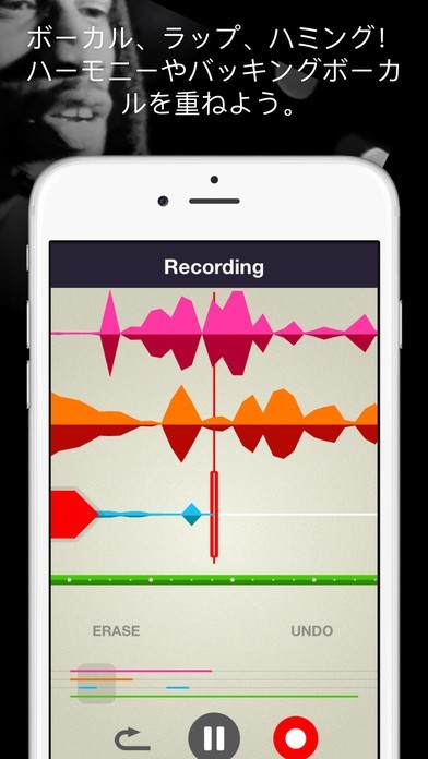 ボーカルはもちろんのこと、ハミングやラップ、ギターフレーズなども録音し、世界中のユーザーと共有できるのが特徴です。スマートフォンの内蔵マイクを利用して綺麗な音声を録音できるようになっています。