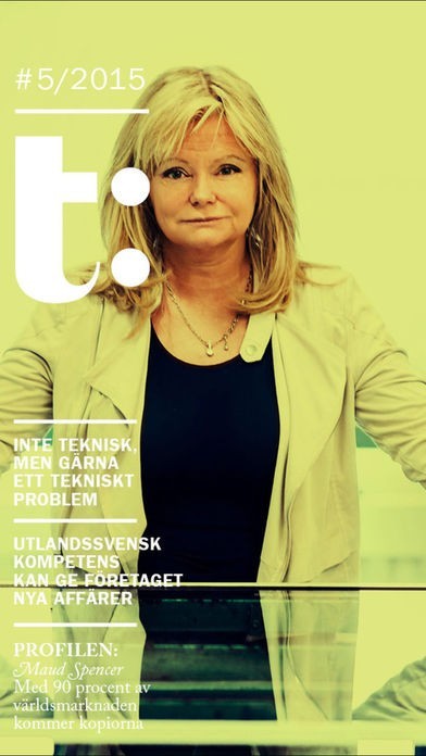 世界的にも存在感のあるスウェーデンのテクノロジー産業。「t:」はそんなスウェーデンの先進的な企業の動向を探るのに最適なマガジンです。毎号にわたって産業リポートや企業トップのインタビューが掲載されています。