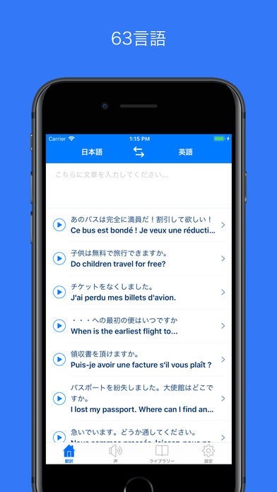 慣れない言語圏への海外旅行や、語学学習であると便利なのが翻訳アプリです。 「翻訳名人」は、日本語、イタリア語、ドイツ語、フランス語など50以上の言語間での利用が可能で、その場で翻訳をしてくれます。 カテゴリー別のライブラリー機能では、様々なシチュエーションでのフレーズが多数収録されており、充実したライブラリーをオフラインで利用することができます。 また、プロにより翻訳されたフレーズなので不自然さも感じません。 音声再生機能が搭載されており発音をチェックしたい時には、スピーカーアイコンをタップするだけの簡単さで、アプリ内購入によって18言語の音声がダウンロードできます。 翻訳機能・音声再生機能は、海外旅行のみならず語学学習にも役立つアプリです。