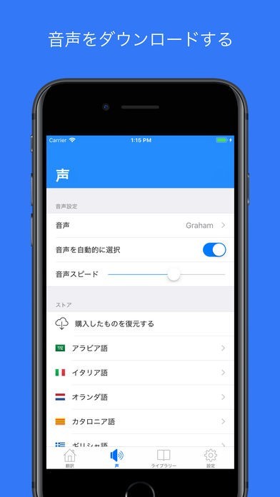 プロによる充実した翻訳ライブラリーをオフラインで利用!音声ダウンロードで発音もチェック!